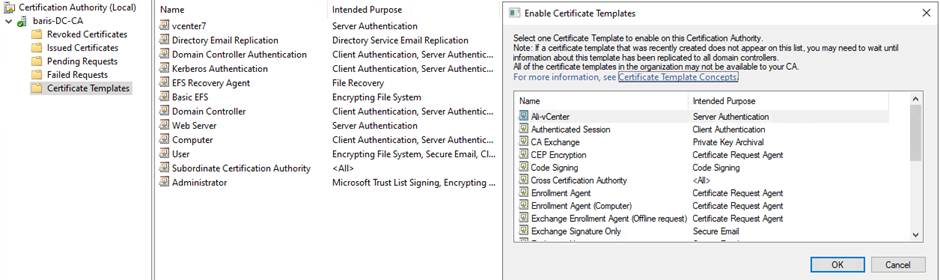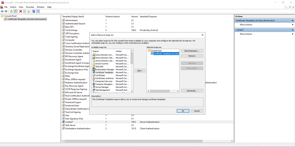 2- MMC/File/Add or Remove Snap-ins/Certificate Templates ADD> ok deyip yüklüyoruz.