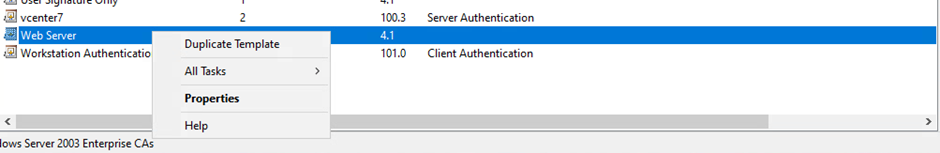 3- “Web Server” isimli template’e sağ tıklayıp dublicate ediyoruz.