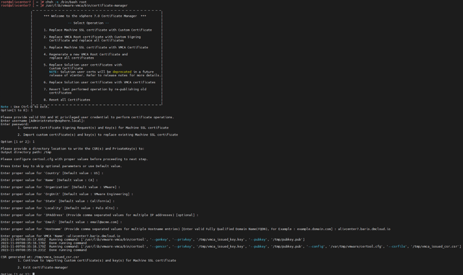 /usr/lib/vmware-vmca/bin/certificate-manager //vCenter sertifika yöneticisine bağlanmak için.