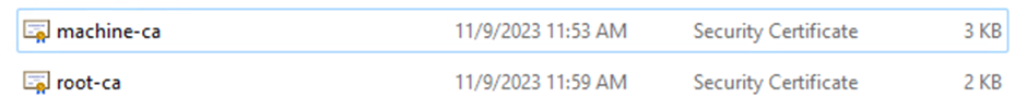 15- İlk indirdiğimiz machine ca ikinci indirdiğimiz ise root ca.
