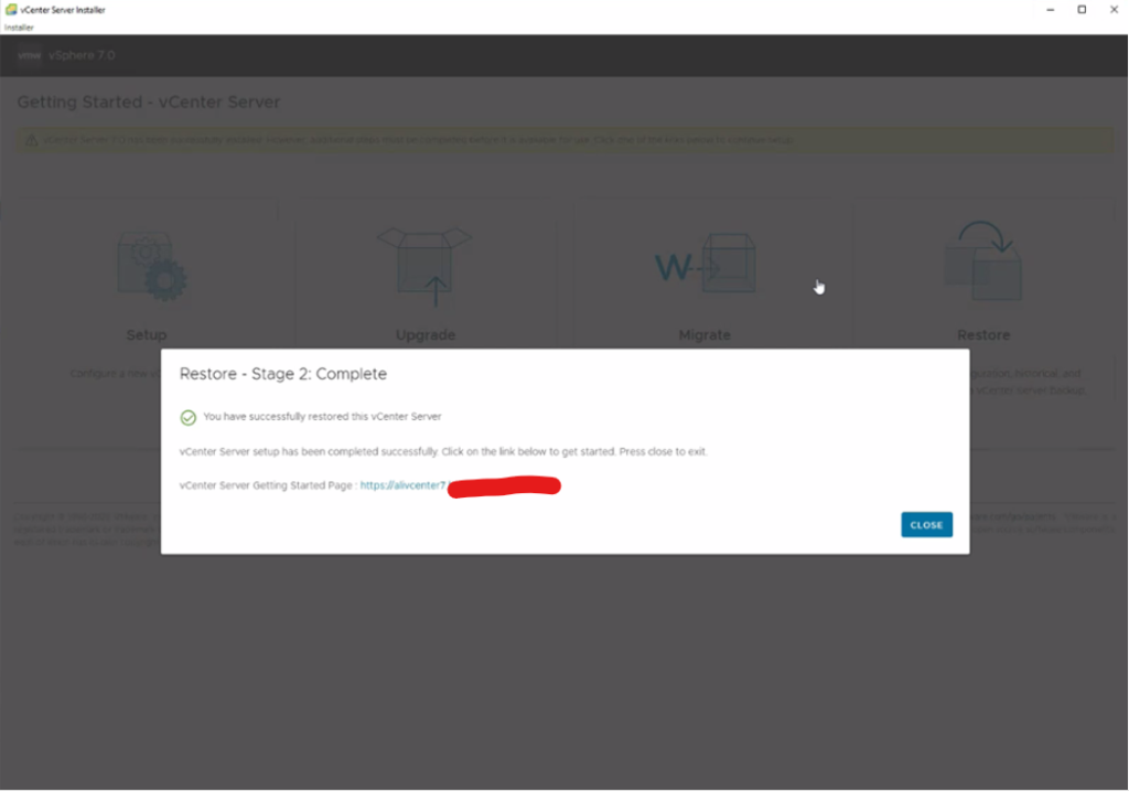 17- Restore tamamlandı. Web browser üzerinden vCenter’a erişebiliriz.