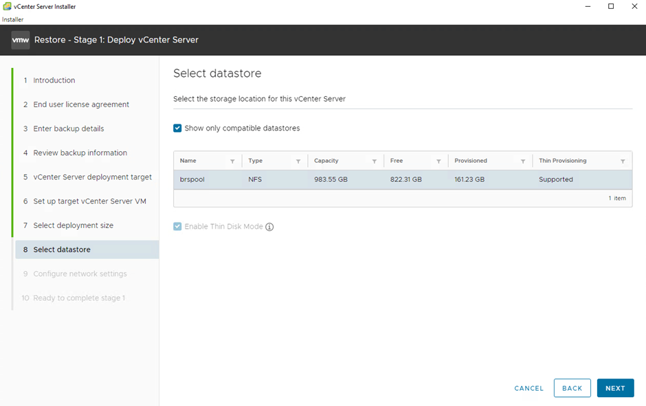 12- Stage 1-8’de vCenter’ın konumlanacağı datastore’u seçiyoruz.
