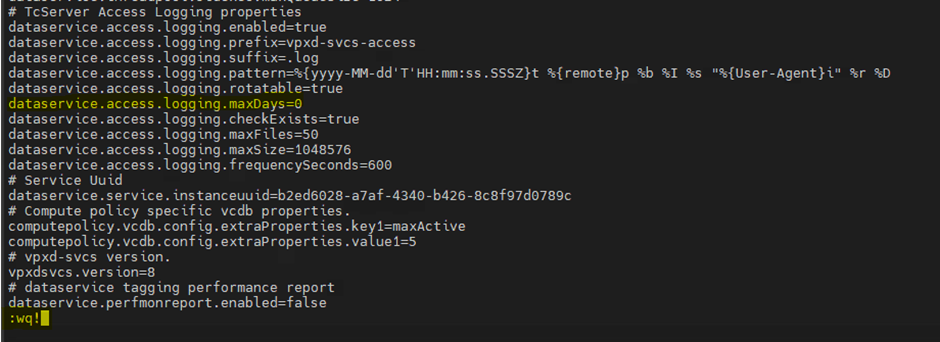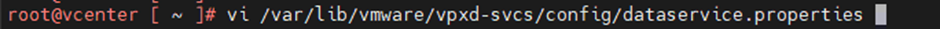 vi /var/lib/vmware/vpxd-svcs/config/dataservice.properties